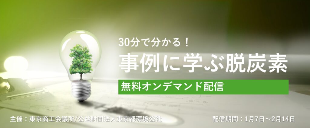 「30分でわかる!事例に学ぶ脱炭素」と題し、中小企業の脱炭素化と経営の両立に向けたオンデマンドセミナーを開催します。