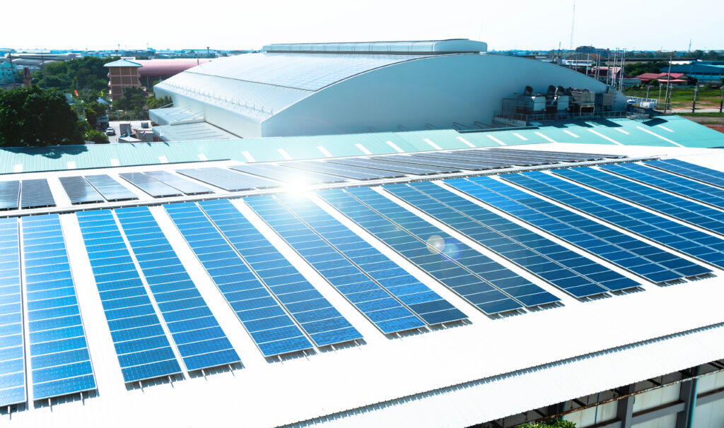 所有している建築物すべてに2030年度までに屋根設置太陽光発電設備を設置する。